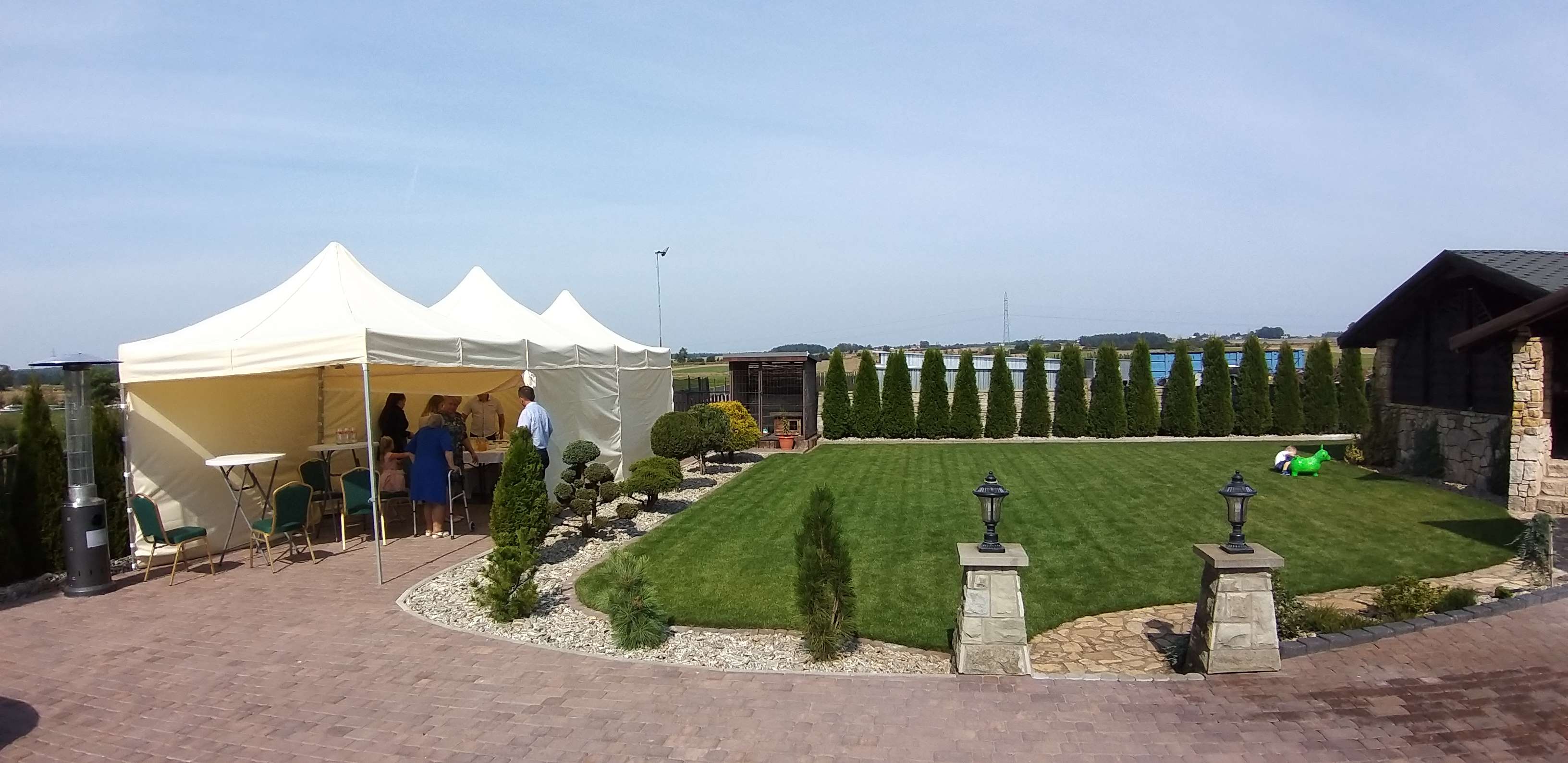 Dysponujemy przestronnymi namiotami, które na życzenie klienta możemy wyposażyć w pełne oświetlenie, stoły, ławy oraz odpowiedni do okazji wystrój.